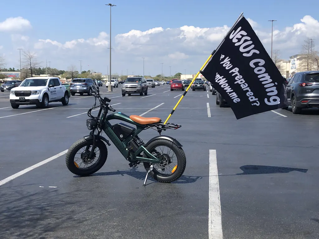 Fat tires (20 inches by 4 inches) designed for optimal traction and stability, allowing the bike to handle rough and uneven terrain with ease.