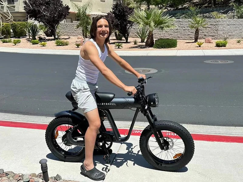 The Smartravel bike is powered by advanced48V 25.6AHbattery technology, offering an1,228.8Whcapacity for improved range, stability, and safety. Go up to 60 miles on pure electric power or over 80 miles with pedal assist. Even after 800 charges, the battery retains 80% of its original capacity, ensuring long-lasting durability and performance with smart safeguards.